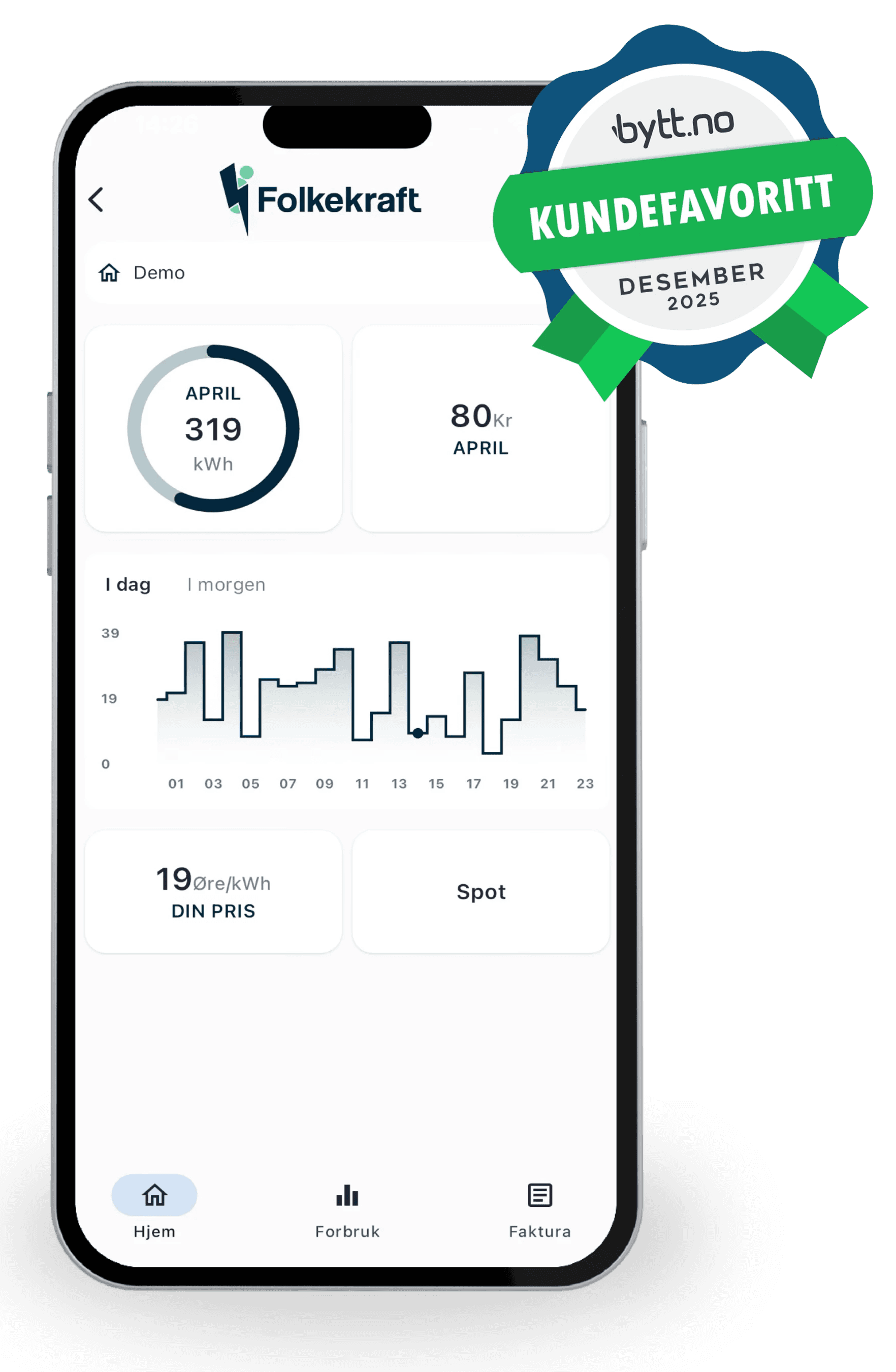 Med Folkekraft-appen har du alltid full kontroll over forbruk og kostnader – enkelt, raskt og tilgjengelig når som helst.